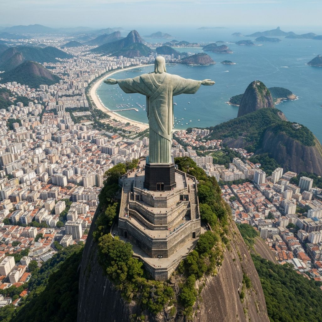 Iconic Art Deco statue overlooking Rio from atop Corcovado mountain